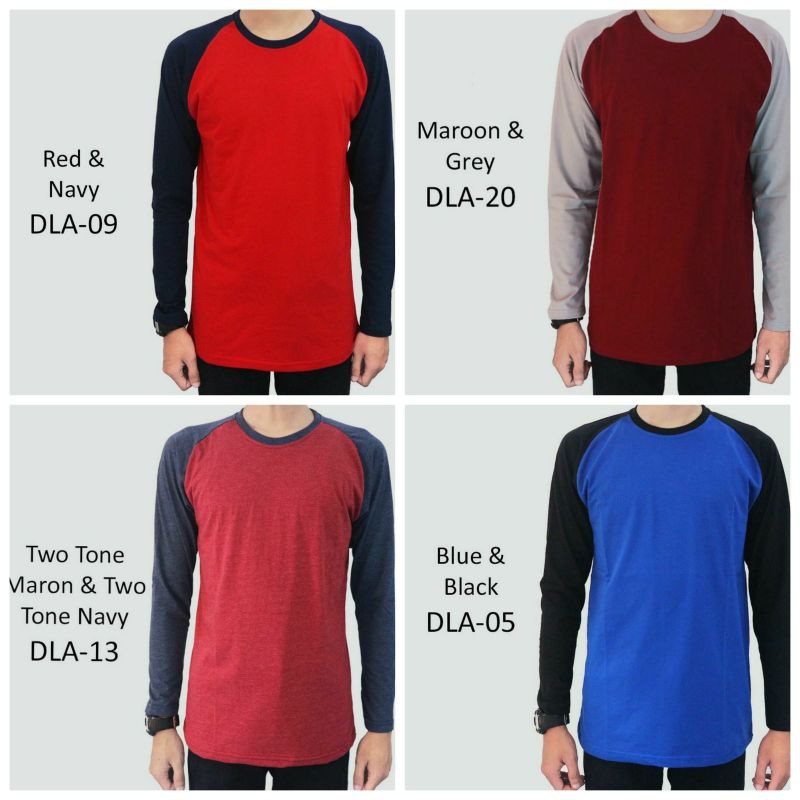 Jual Kaos Raglan Lengan Panjang Kaos Polos Kombinasi Warna Kaos Murah Grosir Indonesia Shopee Indonesia